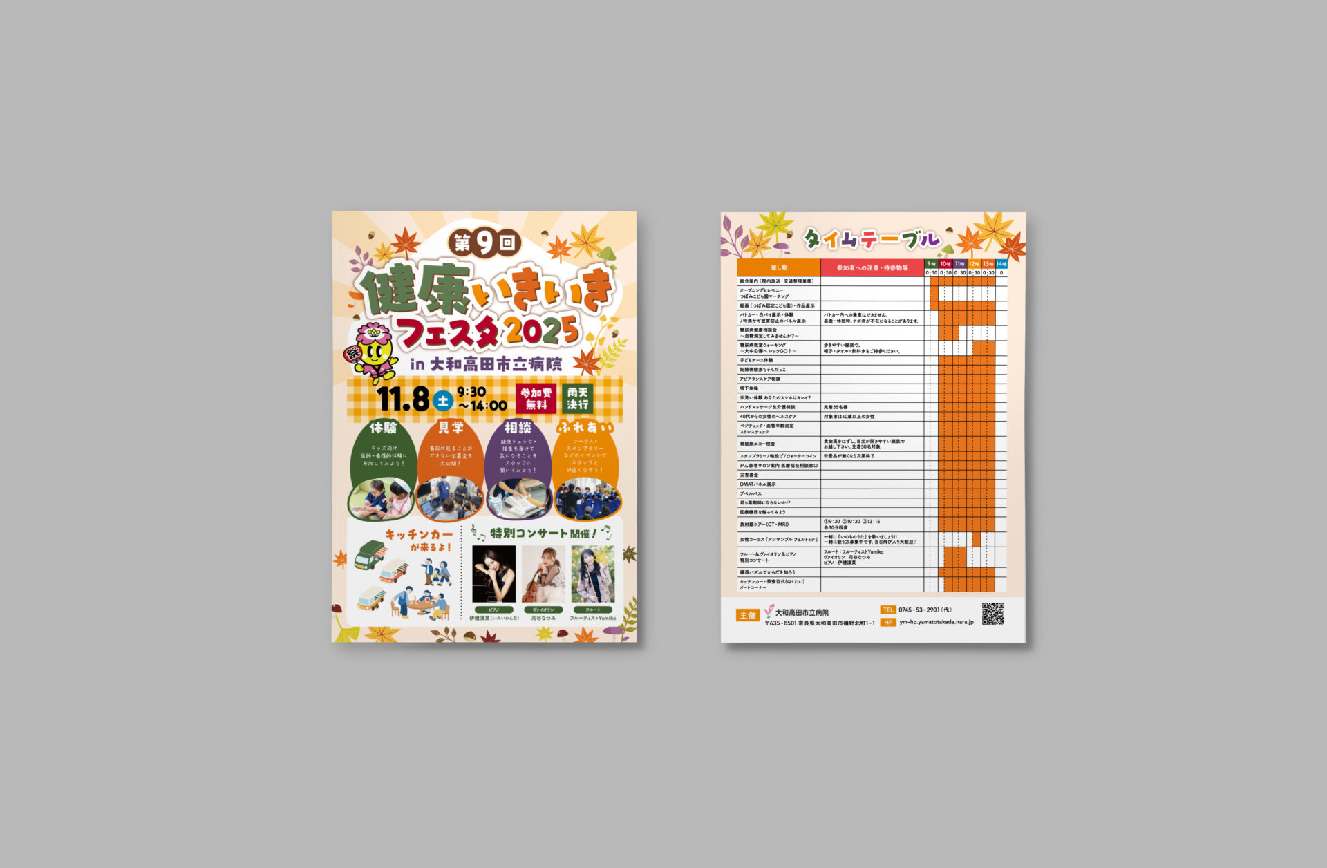 11/8(土)に大和高田市立病院の敷地内で開催された「第9回健康いきいきフェスタ2025」のチラシを作成させていただきました。